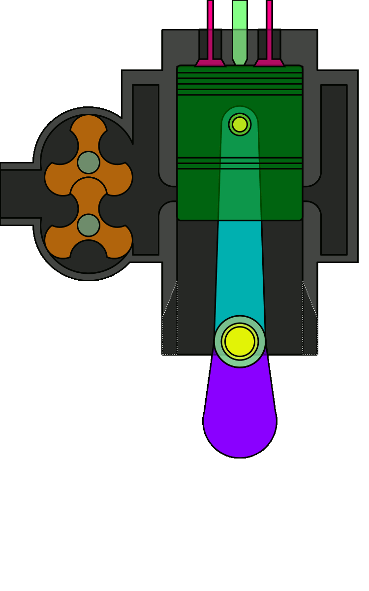 - daarna wordt het mengsel samengeperst en door compressie ontstoken, waarbij de explosie de zuiger naar beneden duwt en de krukas laat draaien om kracht te leveren.