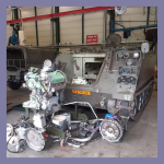 De M113A1 van het Geniemuseum krijgt een nieuwe motor. Natuurlijk onder bezielende leiding van het hogere echelon, maar met hulp van de vaste (vrijwillige) bemanning. Daarmee is dit deel van de rijdende collectie van het museum weer up and running.