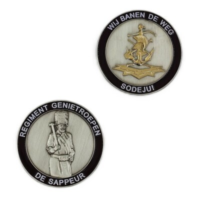 Dit is de eerste officiële Historische coin Regiment Genietroepen. Een kwalitatief zeer mooie en zwaar uitgevoerde coin uit een serie van in totaal negen. Alle coins uit deze collectie hebben als achterzijde de huisstijl van het regiment; de voorzijde van elke coin is steeds uniek.
